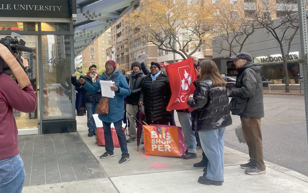 ACORN members gather in front of the Ministry of Municipal Affairs and Housing to demand for the $200 cheques be used instead to create 10k social housing units. Source: ACORN